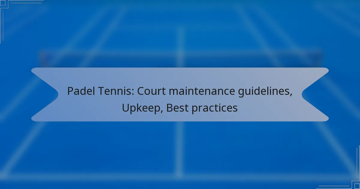 Maintaining padel tennis courts is essential for ensuring optimal playability and safety. Key guidelines include regular surface cleaning, timely repairs, safety checks, seasonal upkeep, and using the right maintenance tools.